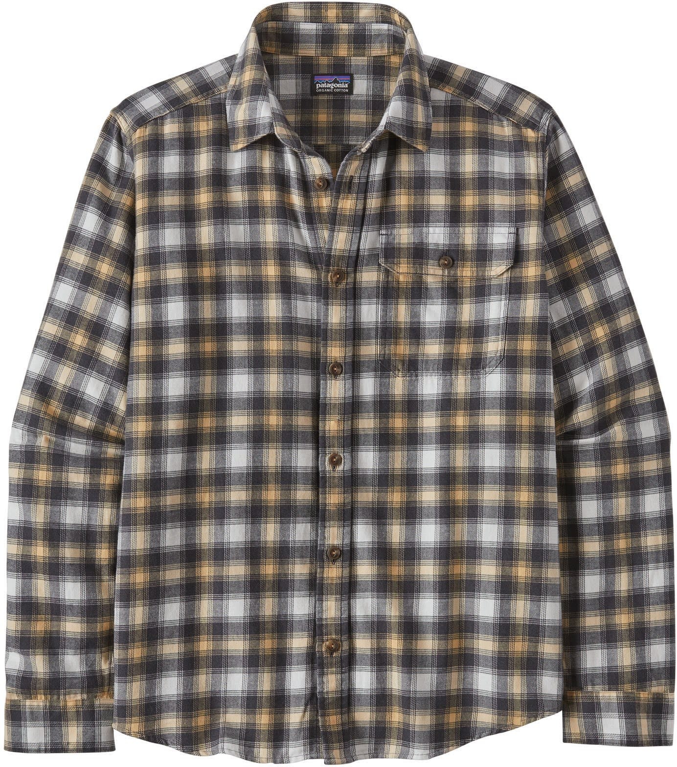Left-chest pocket with single-button flap closure